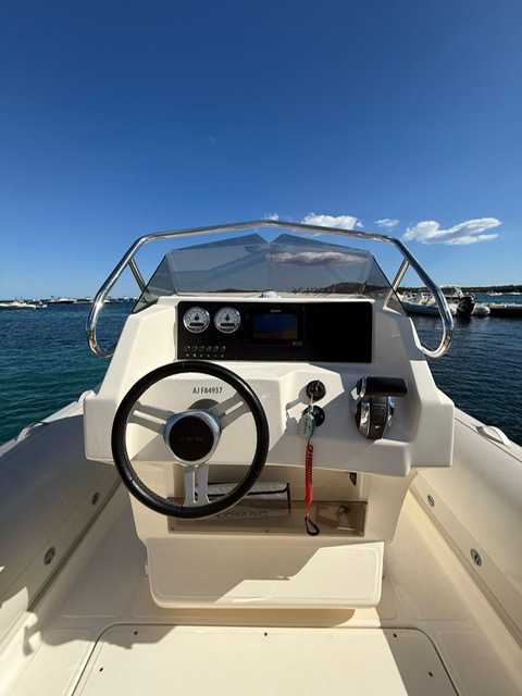 Magnifique Lomac 790 IN millésime 2019, un semi-rigide alliant puissance, confort et style. Véritable référence de la marque italienne, ce modèle séduit par sa ligne élégante, son comportement marin irréprochable et ses finitions de qualité.