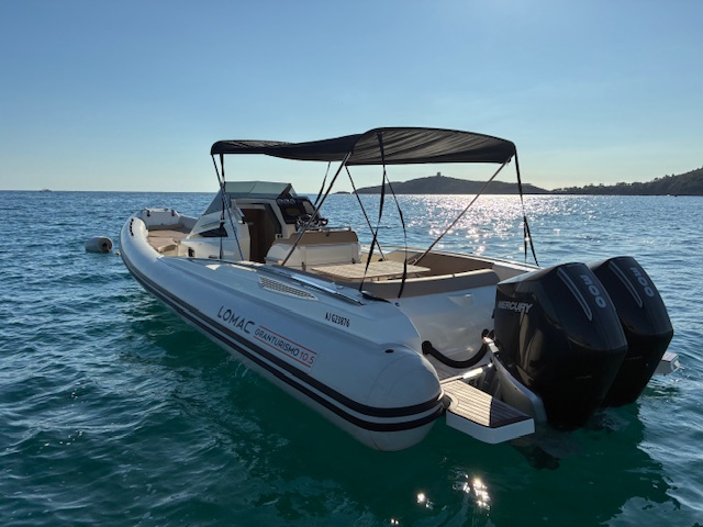 Magnifique Lomac Gran Turismo 10.5, un semi-rigide d’exception alliant élégance, puissance et confort haut de gamme. Modèle phare de la gamme GranTurismo, il a été conçu pour offrir des performances marines remarquables tout en assurant un confort optimal à bord, que ce soit pour la croisière ou le farniente.