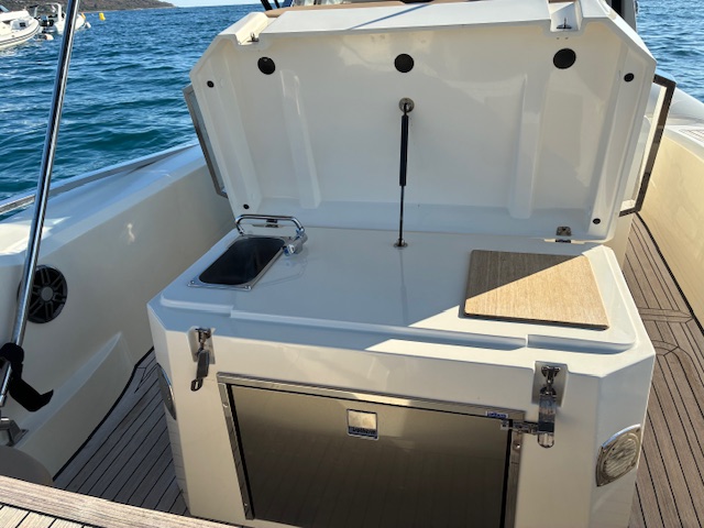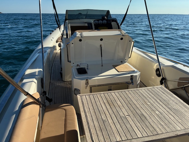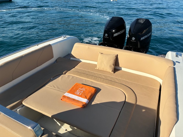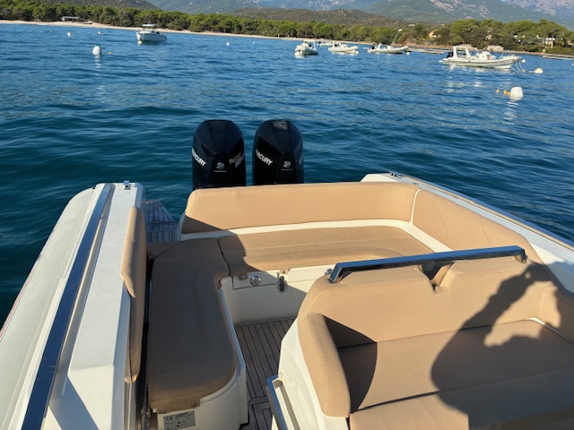 Propulsé par 2 Mercury Verado V8 de 300 CV, ce bateau atteint d’excellentes vitesses de croisière tout en conservant une stabilité et une maniabilité exemplaires. Son aménagement raffiné, sa cabine double et ses grands espaces de détente font de ce modèle le compagnon idéal pour des sorties prolongées en mer ou des week-ends à bord.